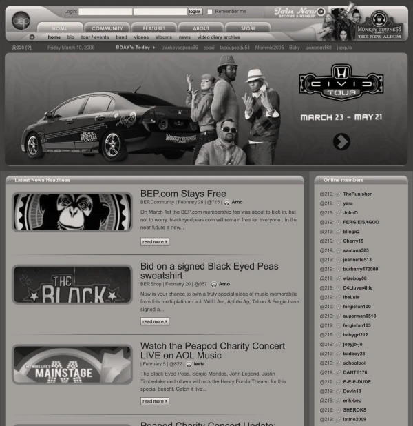 Pioneered the first artist website with fully integrated digital community features, attracting millions of users to the Black Eyed Peas digital stage.